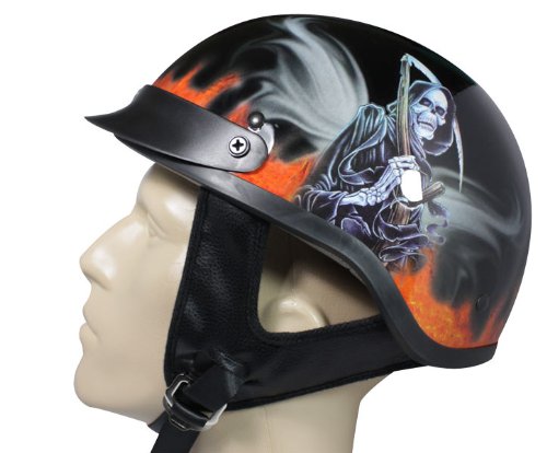 Flame Reaper Black Motorcycle Cruiser Biker Beanie Half Helmet DOT (Large) Reviews