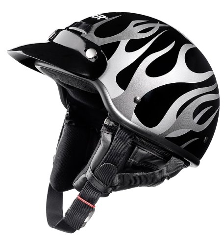 Raider Gloss Black Medium Deluxe Half Helmet with Flame Reviews